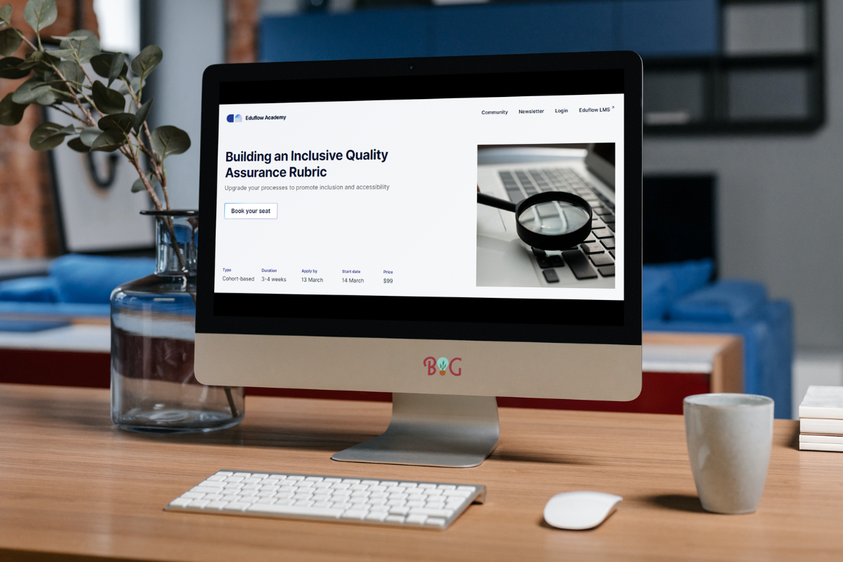 3-week cohort-based, experiential learning course developed for the Eduflow Academy in 2023. The course was project-based, leveraging social learning to understand how implementing a quality assurance rubric in organizations can improve inclusion and accessibility.